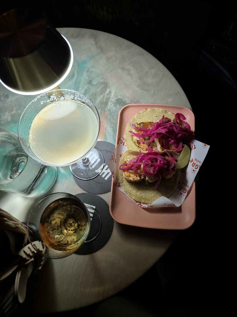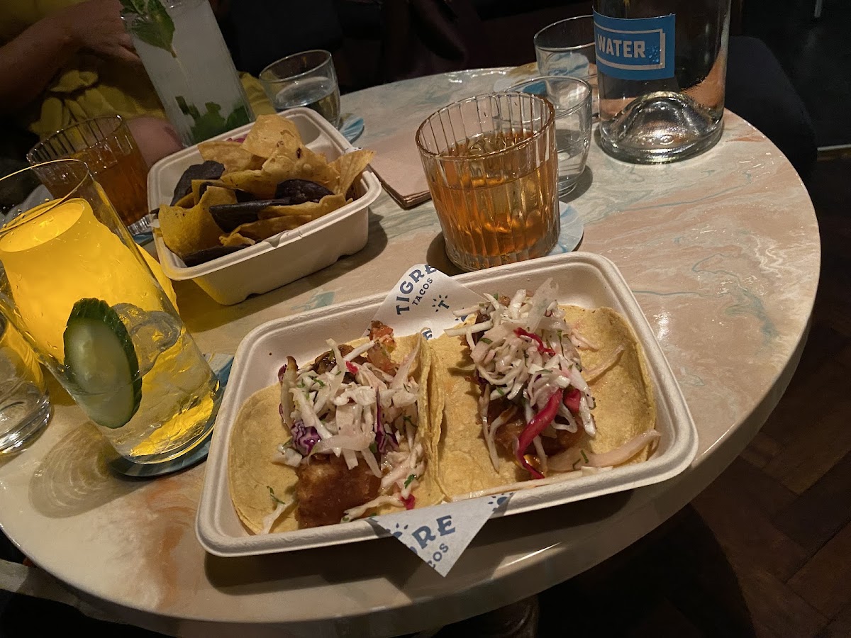 Lovely cocktail bar with a fab atmosphere in a really cool spot underground and just outside London Bridge station. I'm not a big drinker but I had heard about the food so that's primarily what we went for but I did also try the 'Mello' cocktail and it was really good, surprised by how well the cucumber flavour came through! The mango ceviche was incredible, as was the pork, no-fish baja tacos, and beef tacos - I would 100% go back for the food alone! The service was really good, the only negative was we were slightly rushed at the end of the meal because we were close to our 2 hour allocation, and they were super busy - but that bodes well for them if they're in constant demand so I can't really complain!